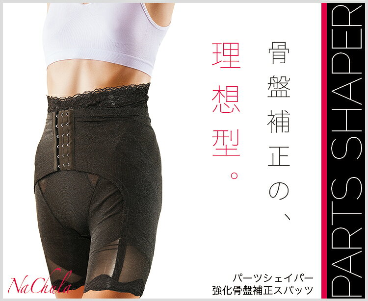 PARTS SHAPER [パーツシェイパー] 強化骨盤補正スパッツ NaChula(ナチュラ) 商品詳細 商品名:PARTS SHAPER(パーツシェイパー) ウエスト+強化骨盤補正+小尻補正+セルライト 強化骨盤補正スパッツ 仕様:ブラック 配合成分/素材:ナイロン78%・レーヨン22% ※クロッチ部分は綿を使用しています。